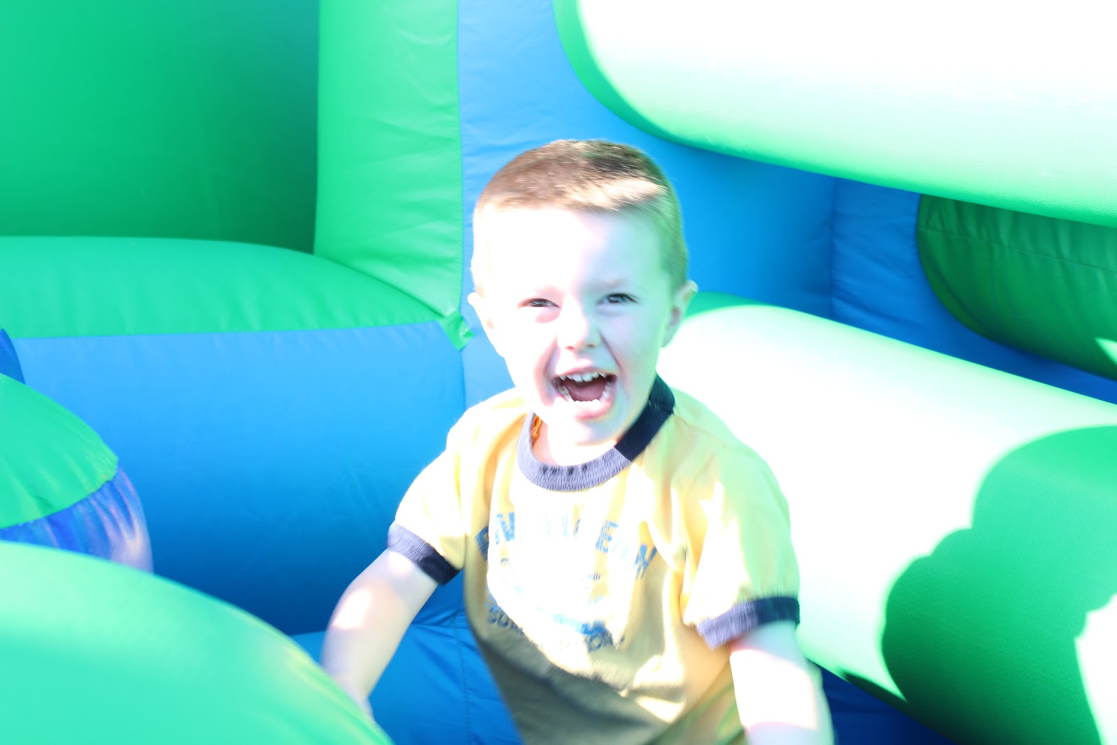 Playing in the bounce house. |